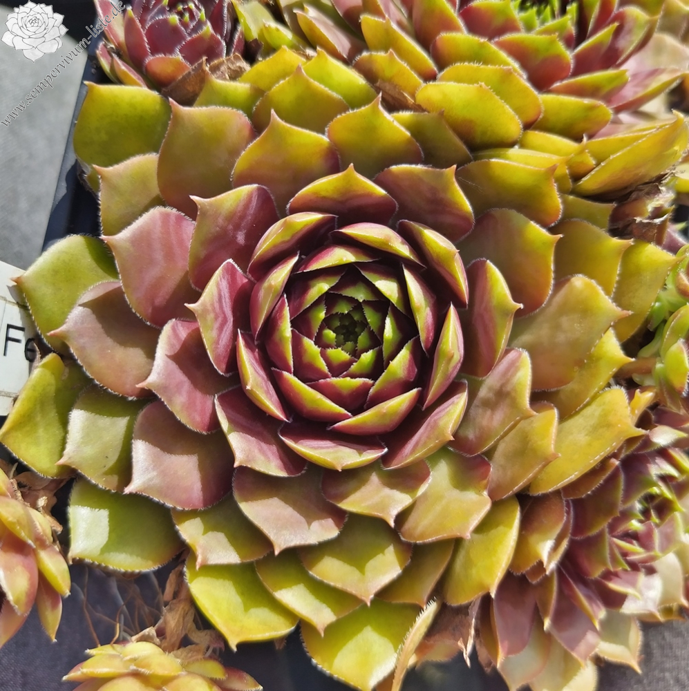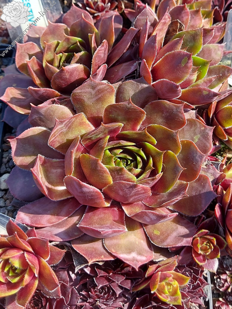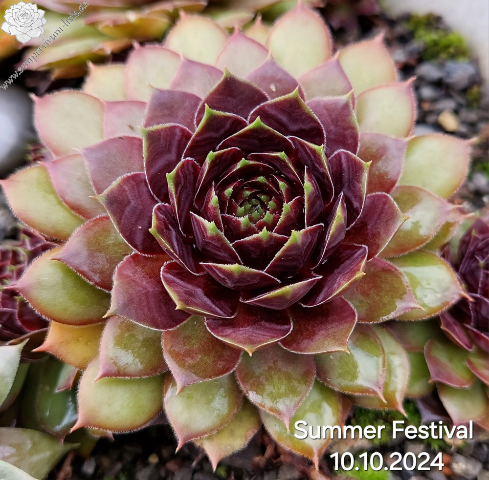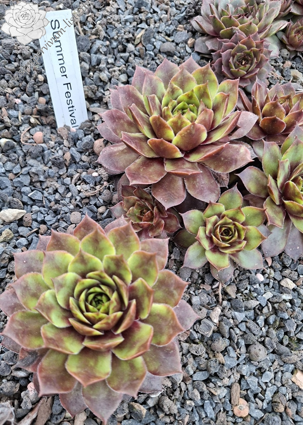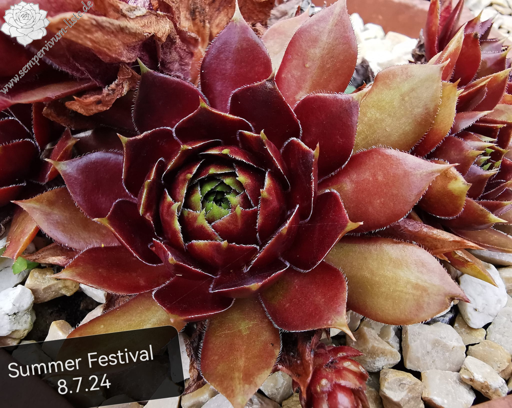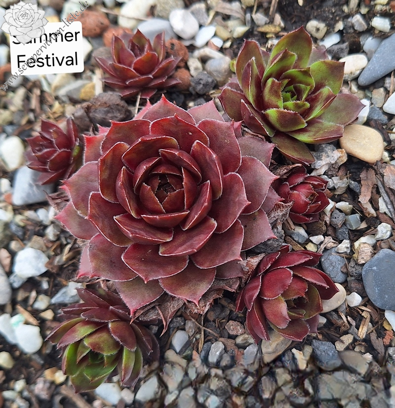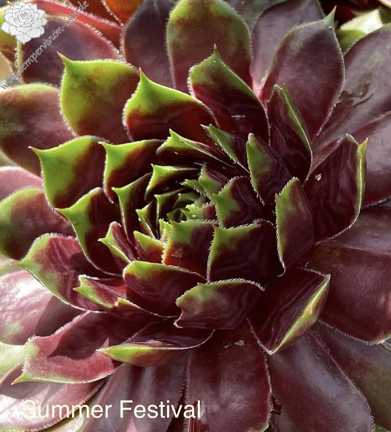 Mit Sempervivum 'Summer Festival' haben wir einen ganz neuen Hauswurz im Sortiment, der im Sommer unglaublich bunte Farben zeigt. Die Rosetten erreichen einen Durchmesser von über 9 cm und sprossen willig. Dieser Verwandlungskünstler fällt das ganze Jahr über auf. Die Färbung hält sich sehr gut und verträgt auch höhere Temperaturen. Das große, warm rot gefärbte Zentrum fällt sofort ins Auge. Die Blattenden besitzen eine hellgrüne Färbung und zeigen besonders im Sommer fast gelb/orange Töne. Im Sommer gefallen mir besonders die gelben Blattränder. Die Pflanzen besitzen einen ganz eigenen Reiz und begeistern rund ums Jahr. Die Blüten werden gerne von Insekten besucht.