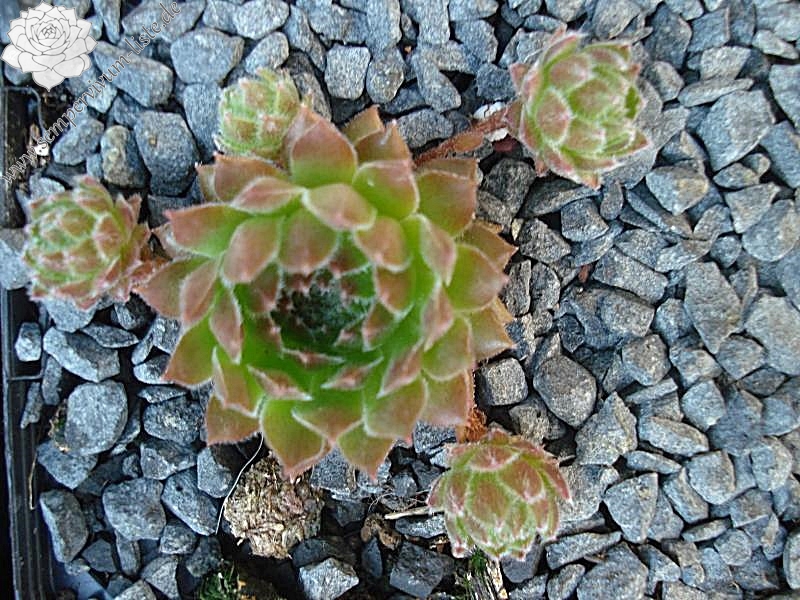 Sempervivum ‘Sunray Cherub’ ist ein kleiner, wüchsiger Hauswurz der ganz dichte Polster bildet. Er zeigt eine schöne Färbung.