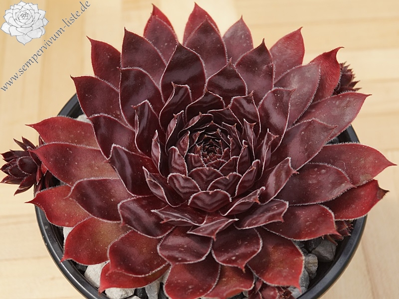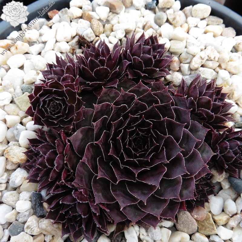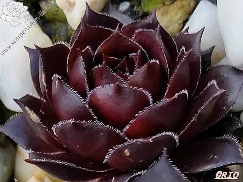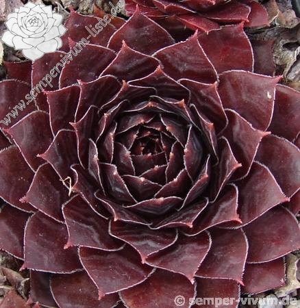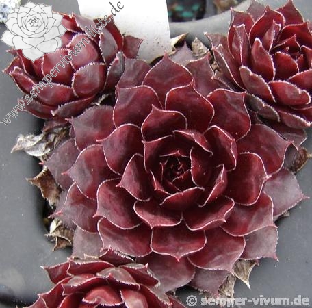 One of this breeder's older introductions and it's definitley one for fans of dark Semps. It's a very, very dark purple but could easily pass for black, especially in a group of mixed Semps. The leaves are edged with minute silvery hairs.