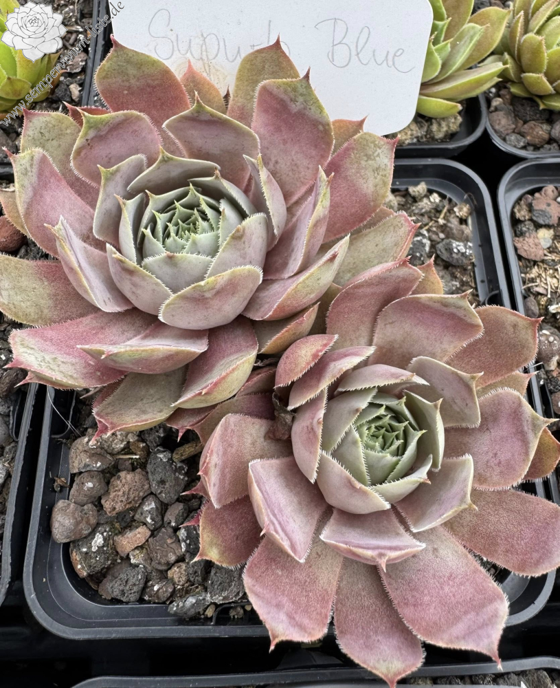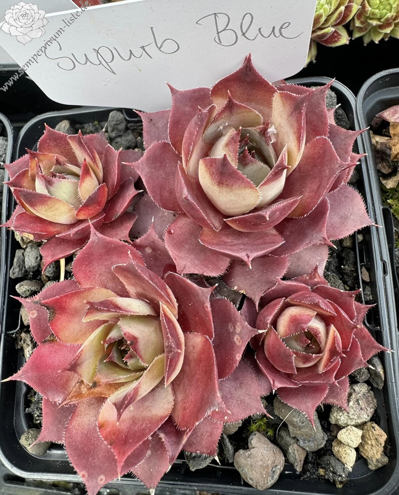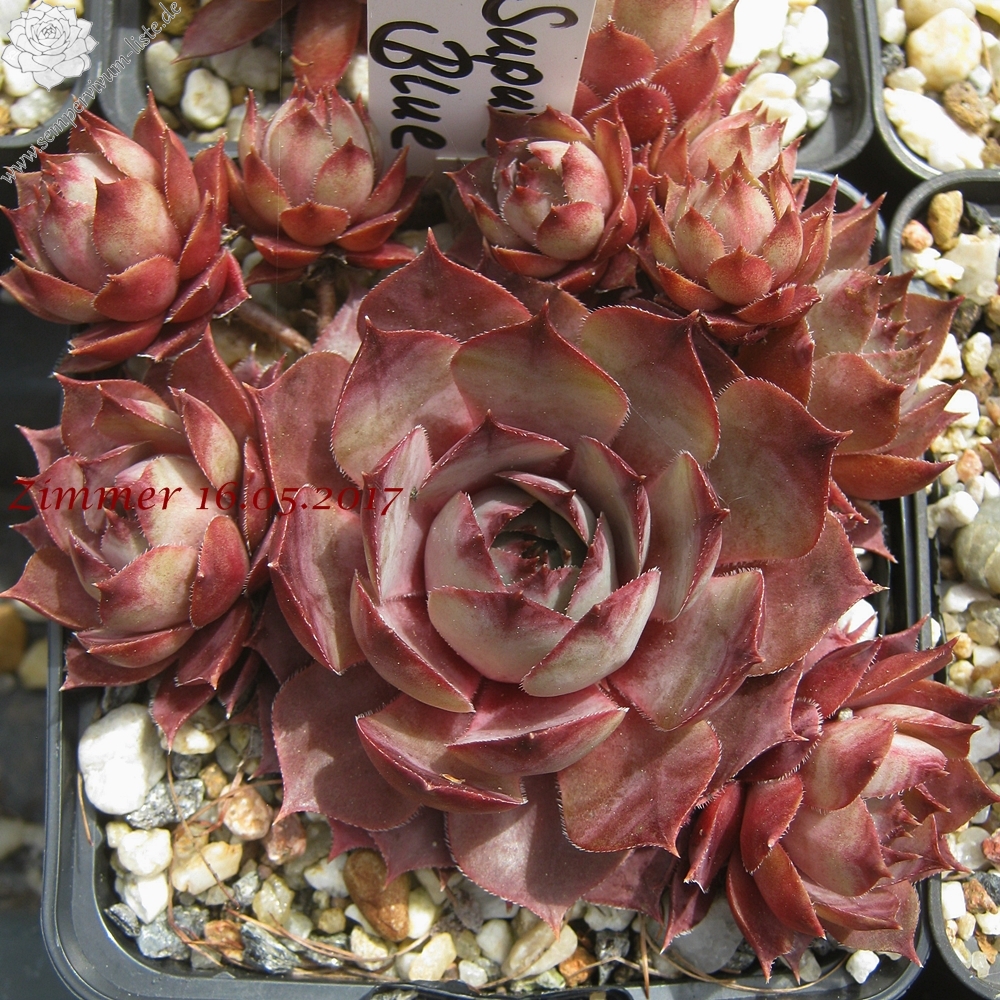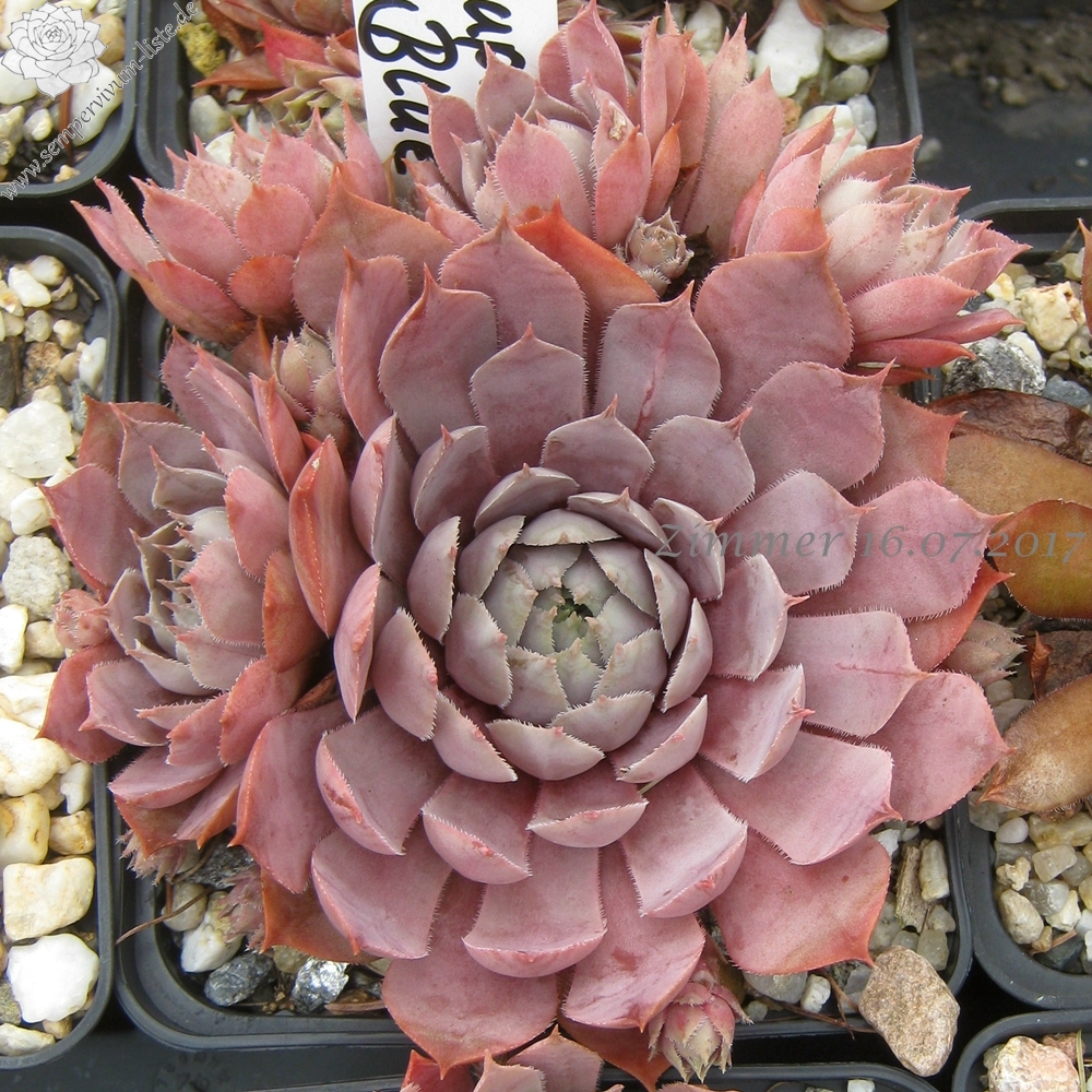 Ein neuer Favorit in unserer Sammlung aus den Niederlanden. Die großen Rosetten erreichen einen Durchmesser von bis zu 15 Zentimeter bei Nährstoffzugabe. 'Supurp Blue' fasziniert ganzjährig mit verschiedenen bläulichen Tönen mit violettrosafarbenen Nuancen.