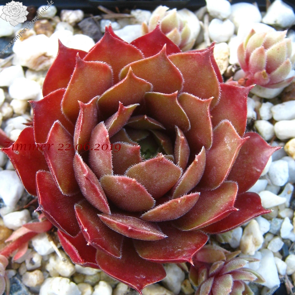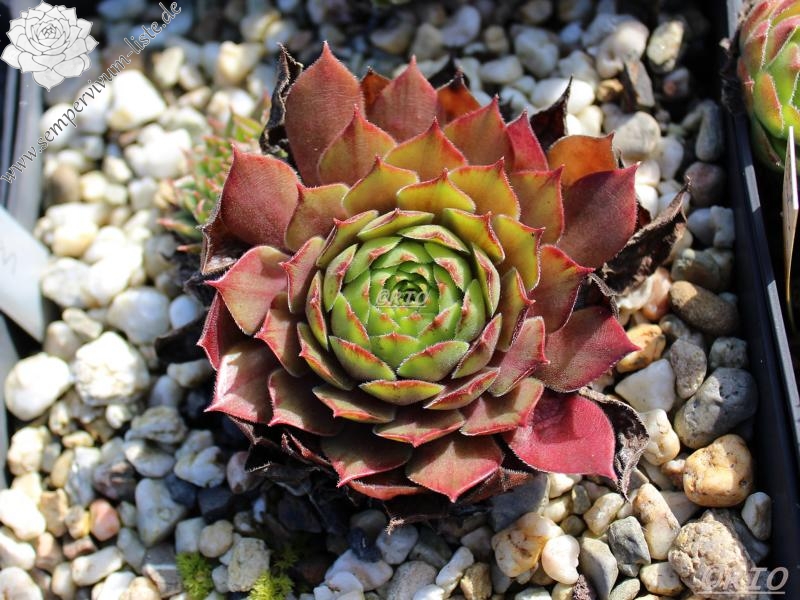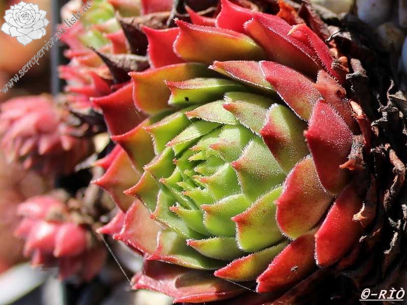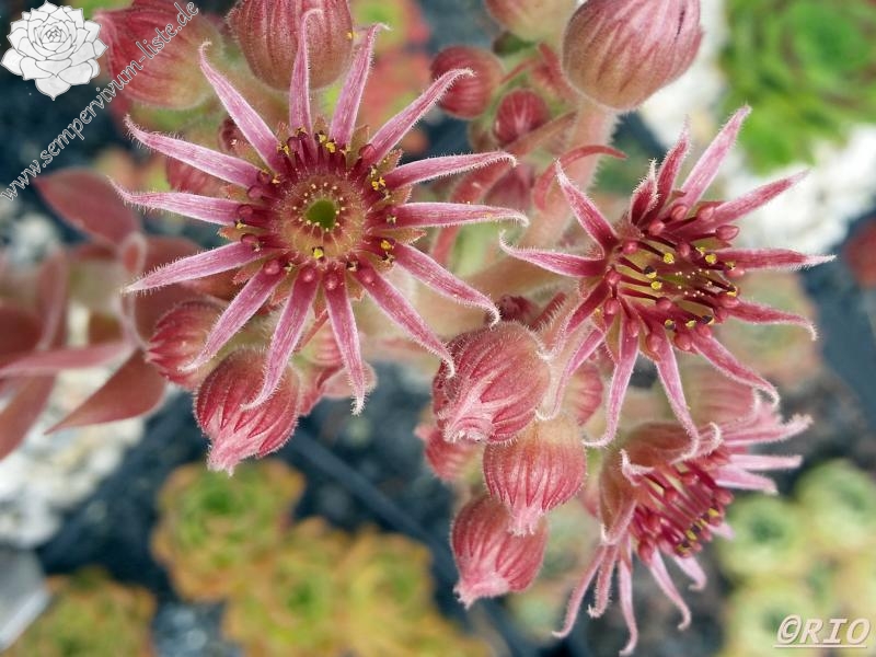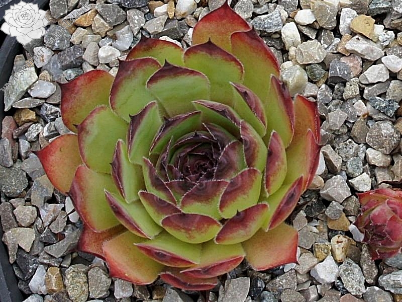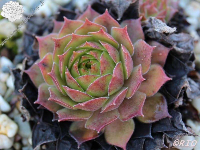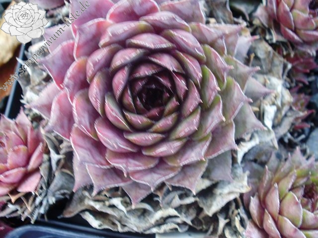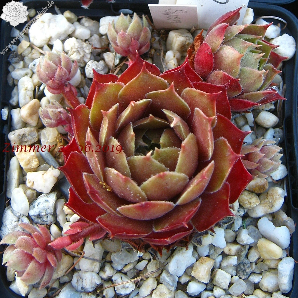 Ros. 4-7 cm, dunkelolivgrün, rosa Rand, lange Ausläufer