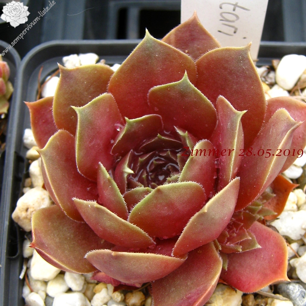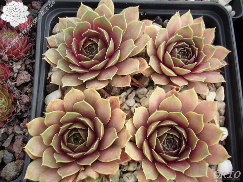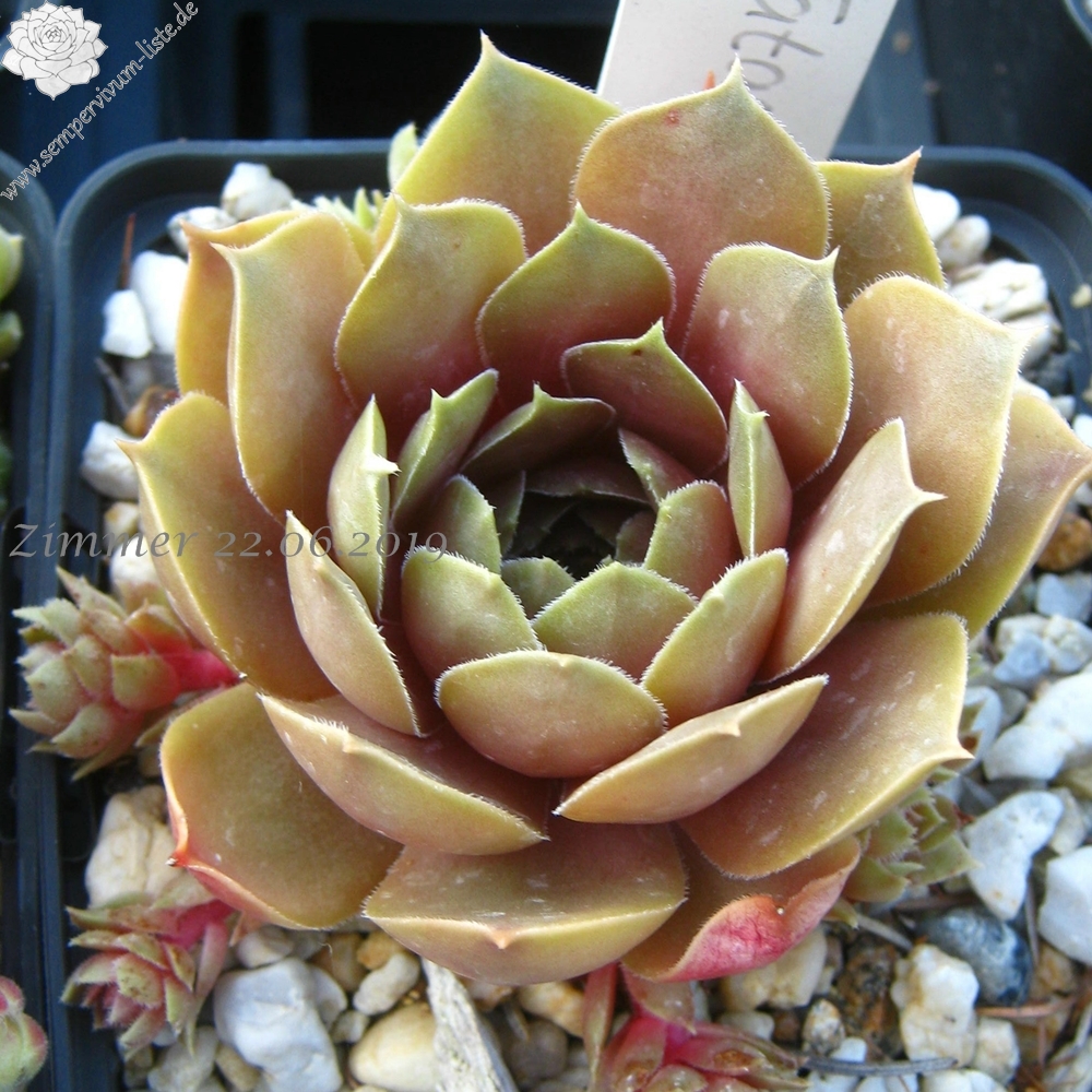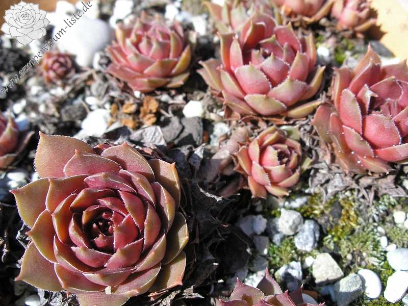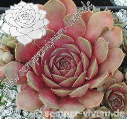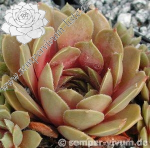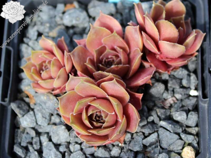 Eine belgische Hybride von André Smits. Es dürfte sich hier um eine Kreuzung mit dem S. marmoreum Kultivar 'Brunneifolium' handeln. Schön geformte Rosetten mit dickfleischigen, bräunlich rosa gefärbtem Laub. Der Nachwuchs sitzt an kräftigen Stolonen. Langsam wachsend und daher selten in Kultur!