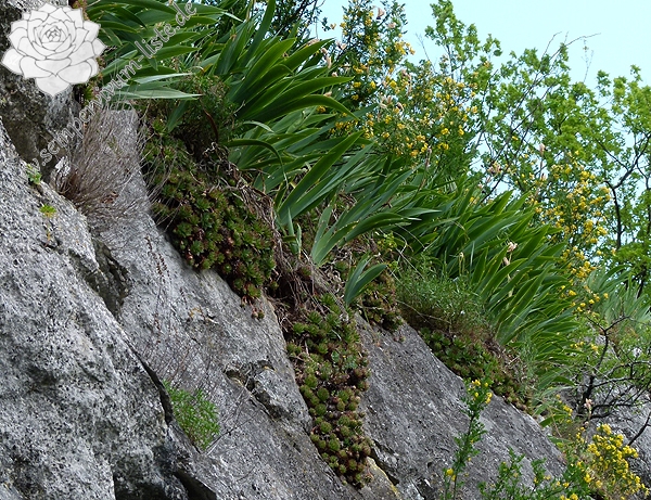 Kubed is a village in the Primorska region in Slovenia. Above the village there is a natural rock wall. On top of the wall is an old fortified church called Sveti Florijan (Holy Florijan). There are a lot of houseleeks on the wall. However, I believe that these are an old introduction of cultivated plants and not a natural locality because: