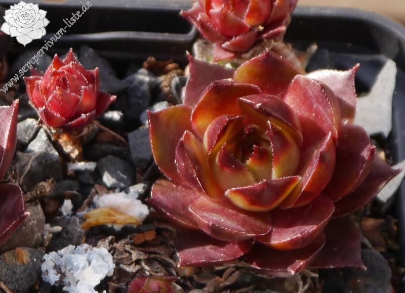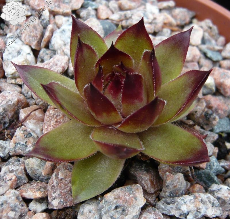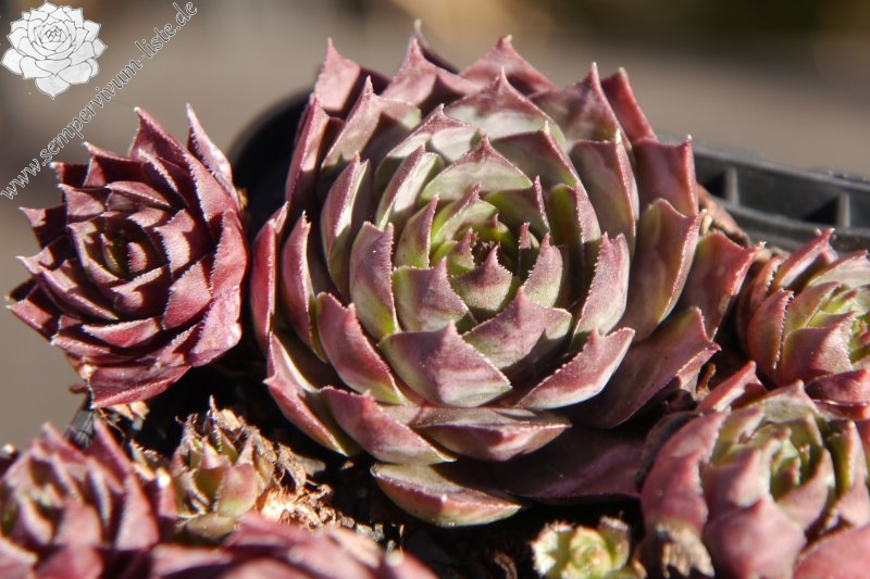 Erwin Geiger: Eine Kulturform mit größeren bräunlich-olivgrünen Rosetten und kontrastreichen, rotbraunen Blattspitzen. Schon seit langem in Kultur.