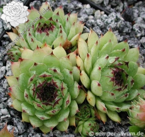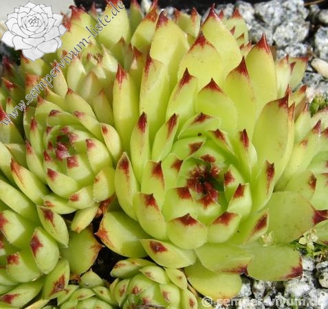 Erwin Geiger: Dieser französische Klon wurde im Jahre 1901 von den Botanikern G. Rouy & E.G. Camus als eigene Species beschrieben. Auch wie viele andere wurde sie später zu S. tectorum gestellt. Diese Art gilt zu den variabelsten unter den Sempervivumarten. Der Typ rupestre formt mit eher schlanken und scharf gespitzten Blättern ca. drei bis sechs Zentimeter große Rosetten im Ø. Die Färbung reicht je nach Jahreszeit von gelblich- bis jadegrün. Im zeitigen Frühjahr hat sie Ähnlichkeit mit S. calcareum und könnte zu dieser Zeit fast verwechselt werden.