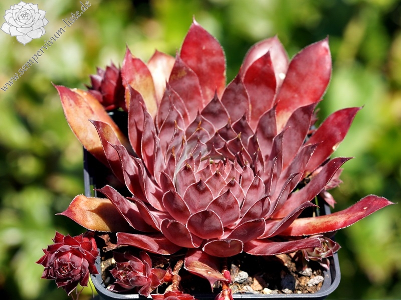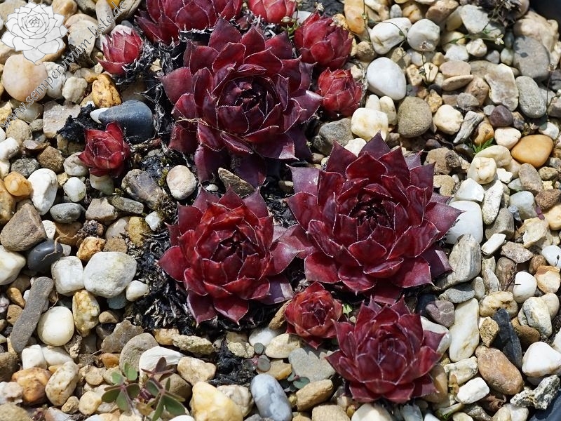 Eine Pflanze, von der man leider immer zu wenig Rosetten besitzt. Diese Besonderheit zeigt im Sommer schöne kräftige Farben. Das Rosettenzentrum zeigt sich oft knospenförmig und die Blätter sind am Grund kräftig rot gefärbt. Die hellen Blattspitzen runden das Bild hervorragend ab. Die mittelgroßen Rosetten bilden dichte Polster.