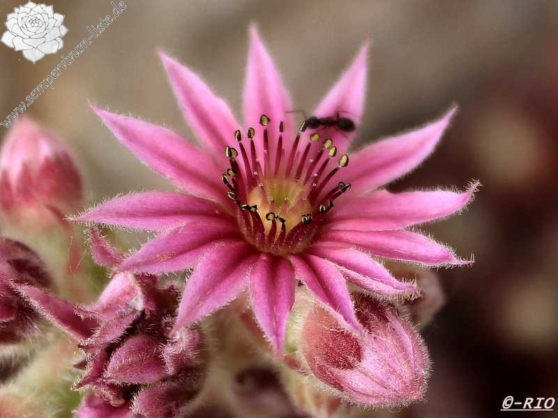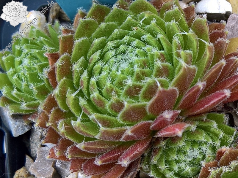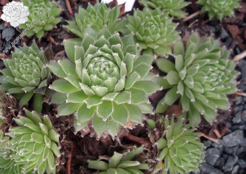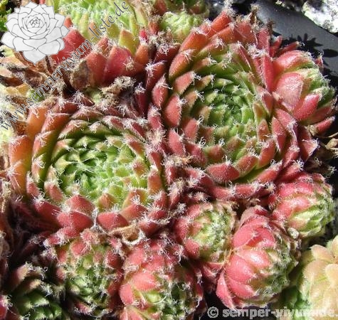 Eine britische Hybride mit viel S. arachnoideum Blut. Die Blattspitzen sind während des Frühjahrs und auch im Sommer mit unzähligen weißen, kleinen Häärchen besetzt. Insgesamt wüchsig und kompakt wachsend.