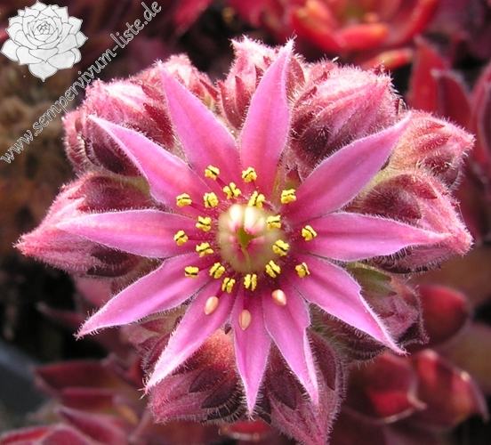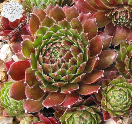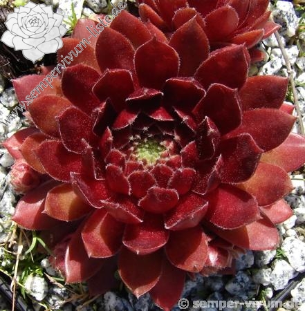 Diese belgische Hybride aus S. tectorum 'Gloriosum' x S. x barbulatum 'King George' hat ihren eigenen Charme. Schon die Form ist anders als bei den anderen hunderten von Züchtungen. Im Frühsommer leuchtend dunkelrote Rosetten mit stark bewimperten Blatträndern. Ein neuer Favorit!