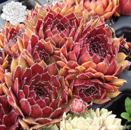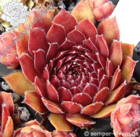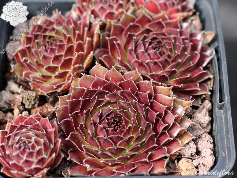 Im Frühjahr dunkle, weinrote Rosetten mit auffallend weiß bewimperten Blatträndern, was der Züchtung wirklich Charme verleiht. Zum Sommer terracottafarbene Töne - bezaubernd!