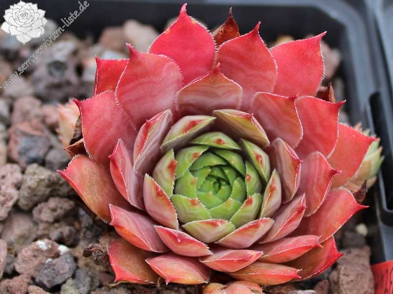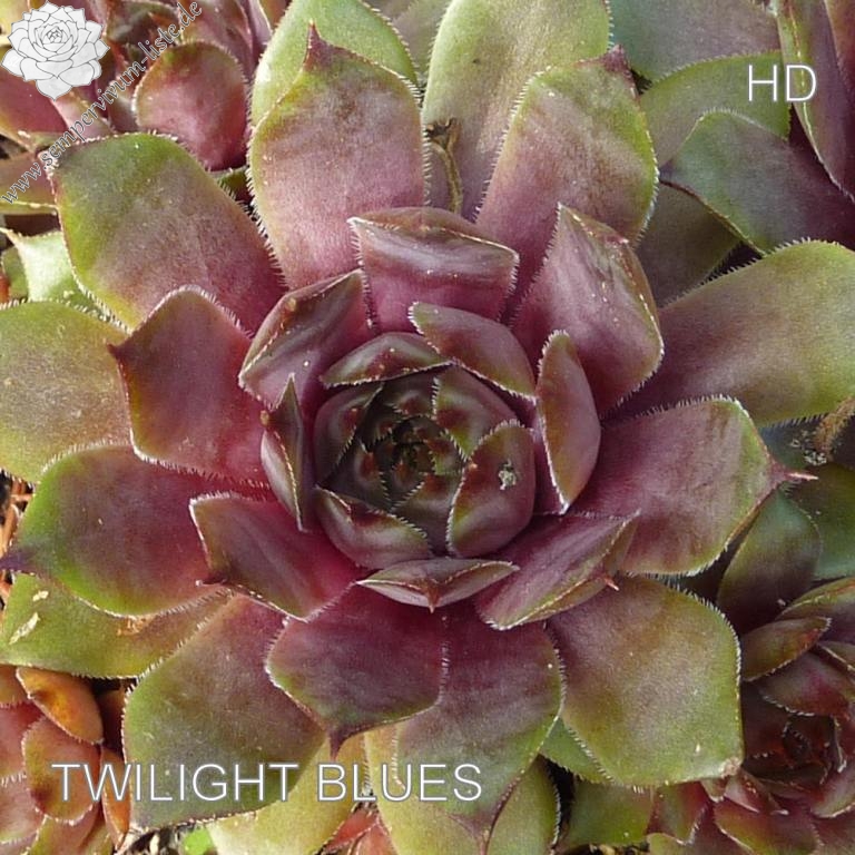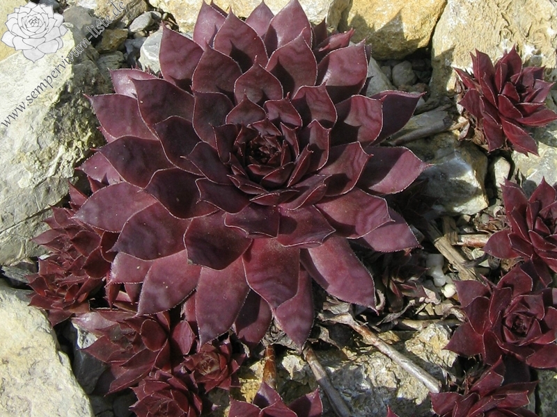 bis 12 cm große, spitze Rosetten, purpurviolett, Blattspitzen dunkel, Blütenhöhe 12 cm