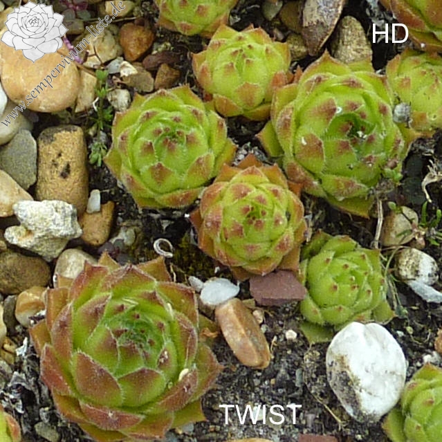 Hier haben wir eine kleine Pflanze, die schnell dichte Polster bildet. Besonders schön wirken die kleinen rötlich gefärbten Blattspitzen auf dem hellgrünen Untergrund. Eine charmante Kreuzung!