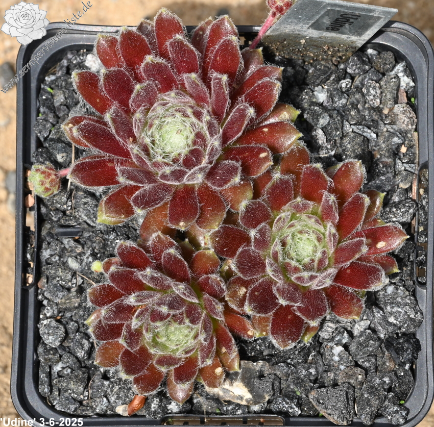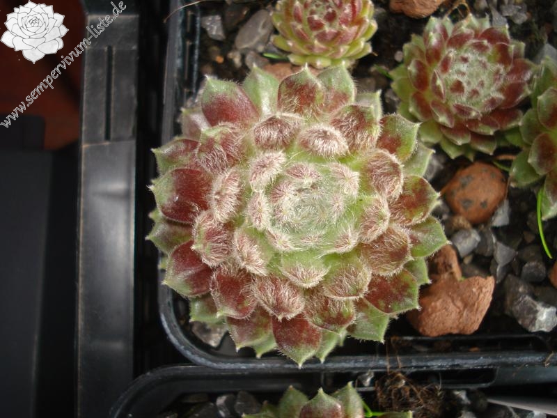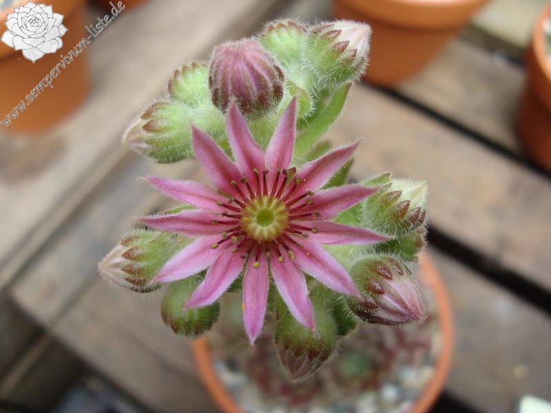 Manchmal findet man die stark bewimperte Hybride auch unter 'Undine'. Auffallend übersponnene Rosetten, wie mit weißem Plüsch überzogen.