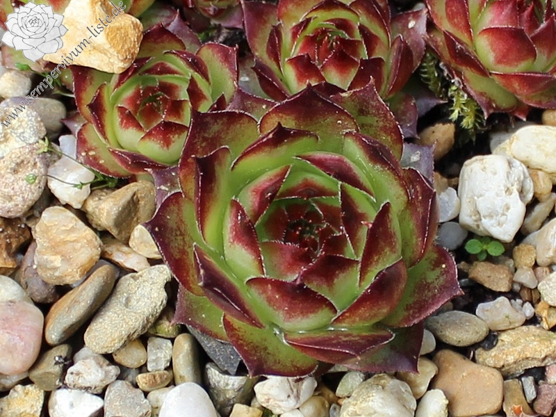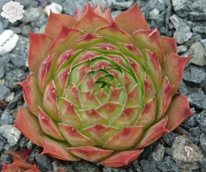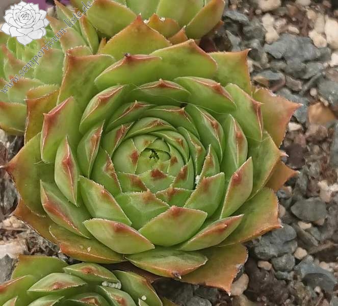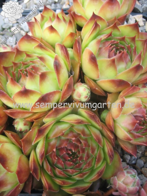 Eine sehr wüchsige Pflanze, mit kühler hell gelbgrüner Grundfärbung und schönen braunen Blattenden. Die Pflanze entstand aus einer Kreuzung mit Sempervivum calcareum!