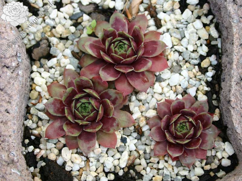 Eine ältere Kreuzung, die mit ihren leuchtenden Farben besonders im Sommer auffällt. Die roten Blattspitzen runden das Gesamtbild gut ab. Die mittelgroßen Rosetten sind wüchsig.