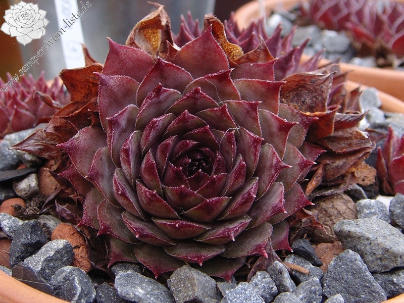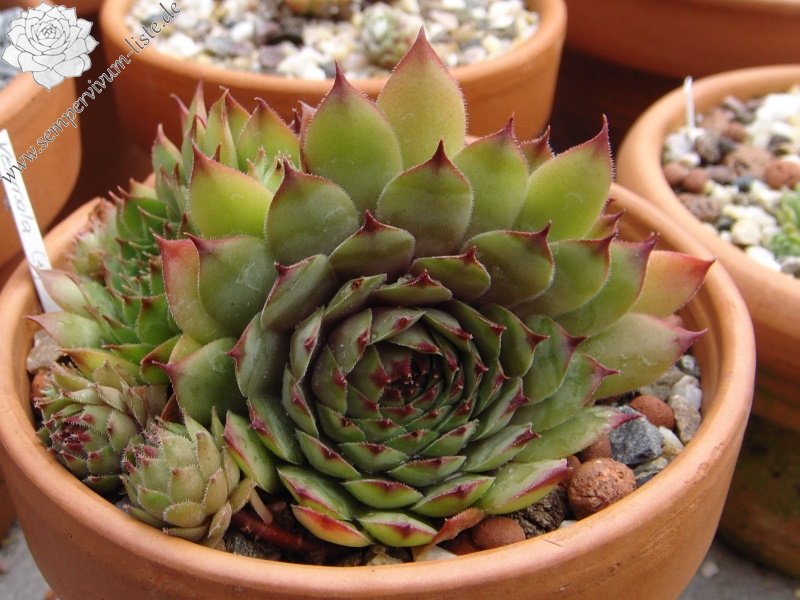 Eine wüchsige Sorte, die manchmal unter dem Namen 'Löwenherz' zu finden ist. Die mittelgroßen Rosetten sprossen gut und bilden dichte Polster.