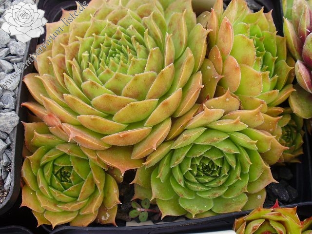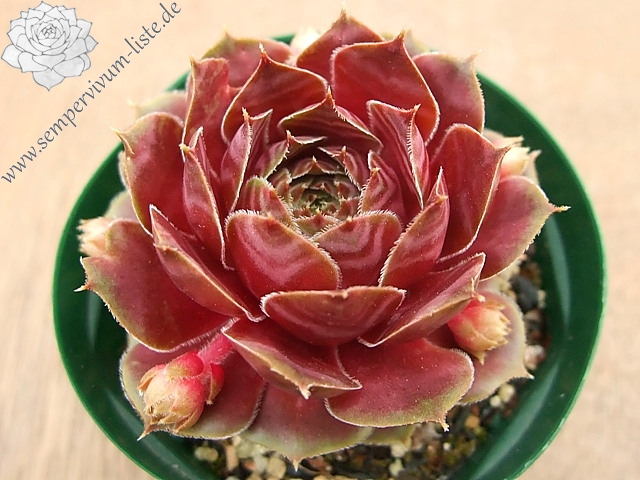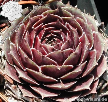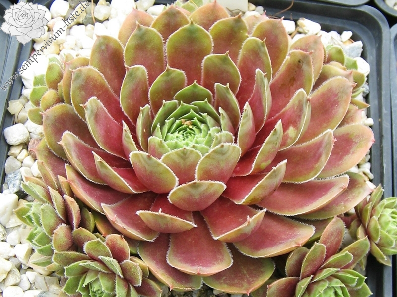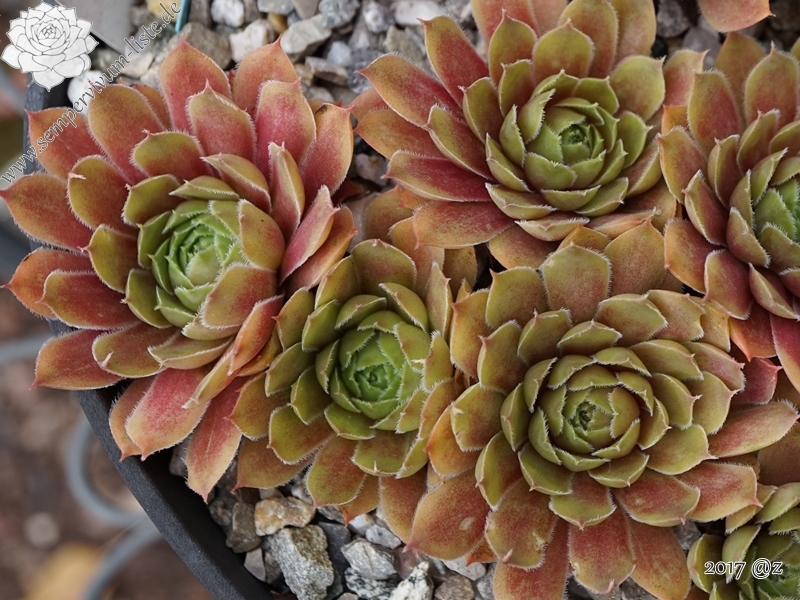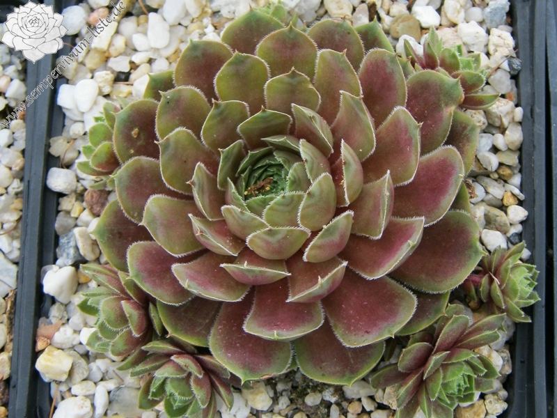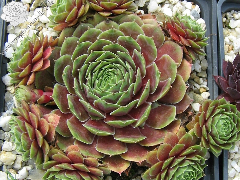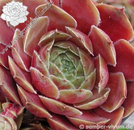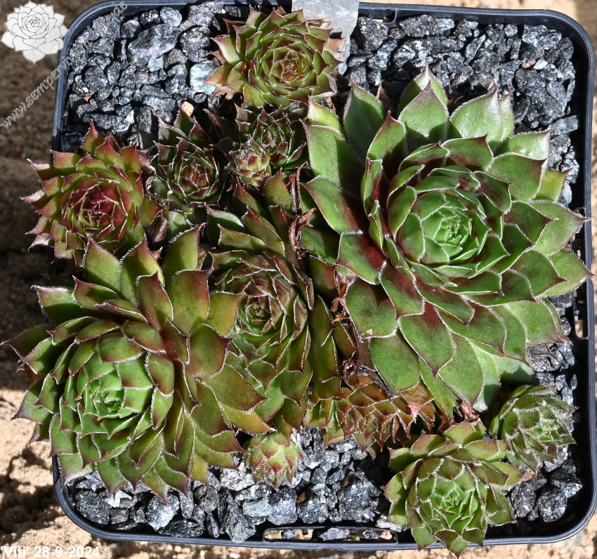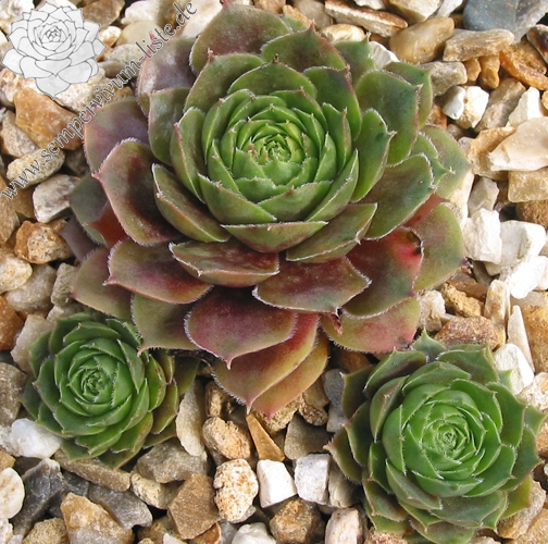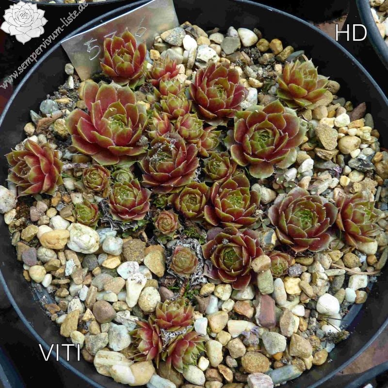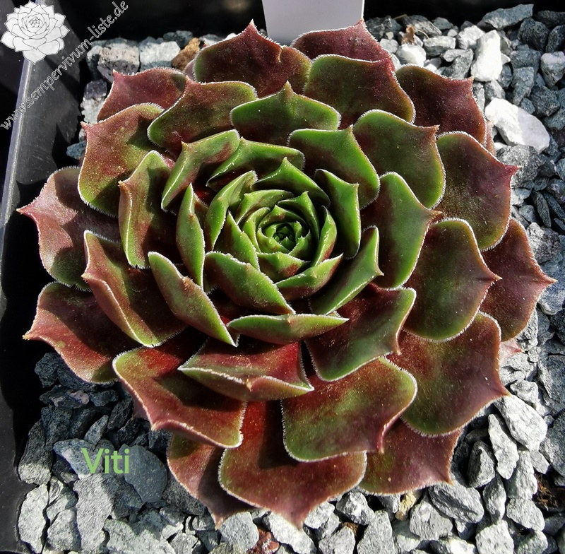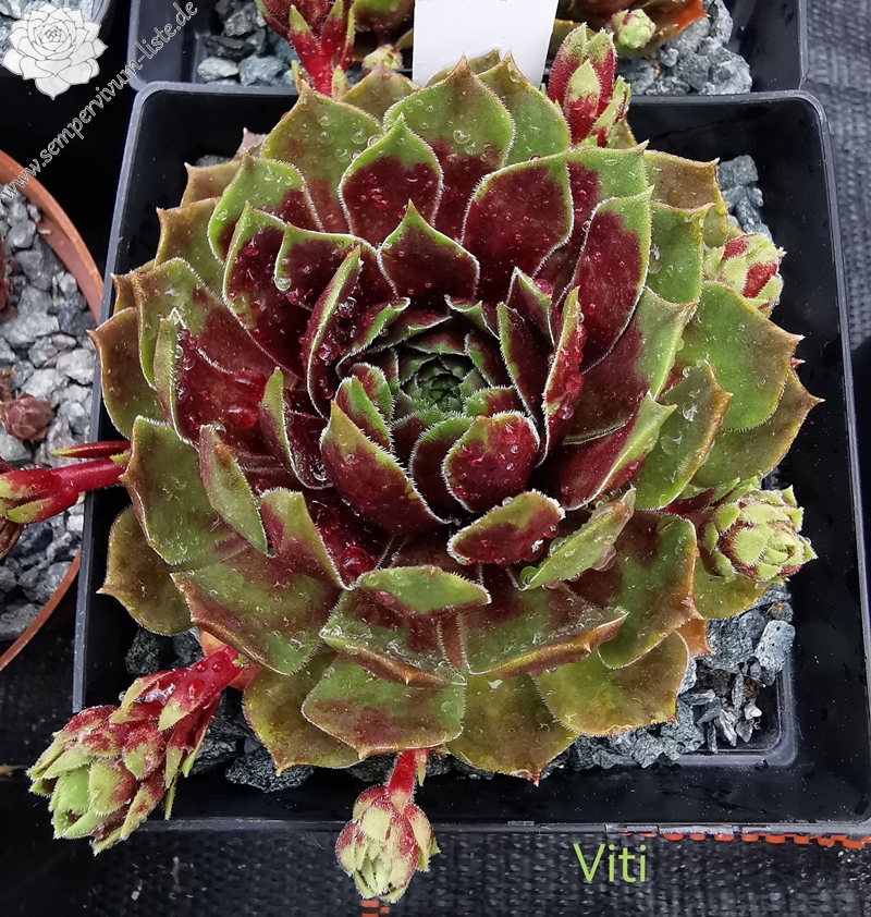 Die Nachkommen von S. marmoreum 'Rubicundum' faszinieren uns immer wieder. Das kräftige Rot mit den helleren, meist grünen Blatträndern und -spitzen. 'Viti' wächst eher langsam und wurde nach einem vulkanischen See auf Island benannt.