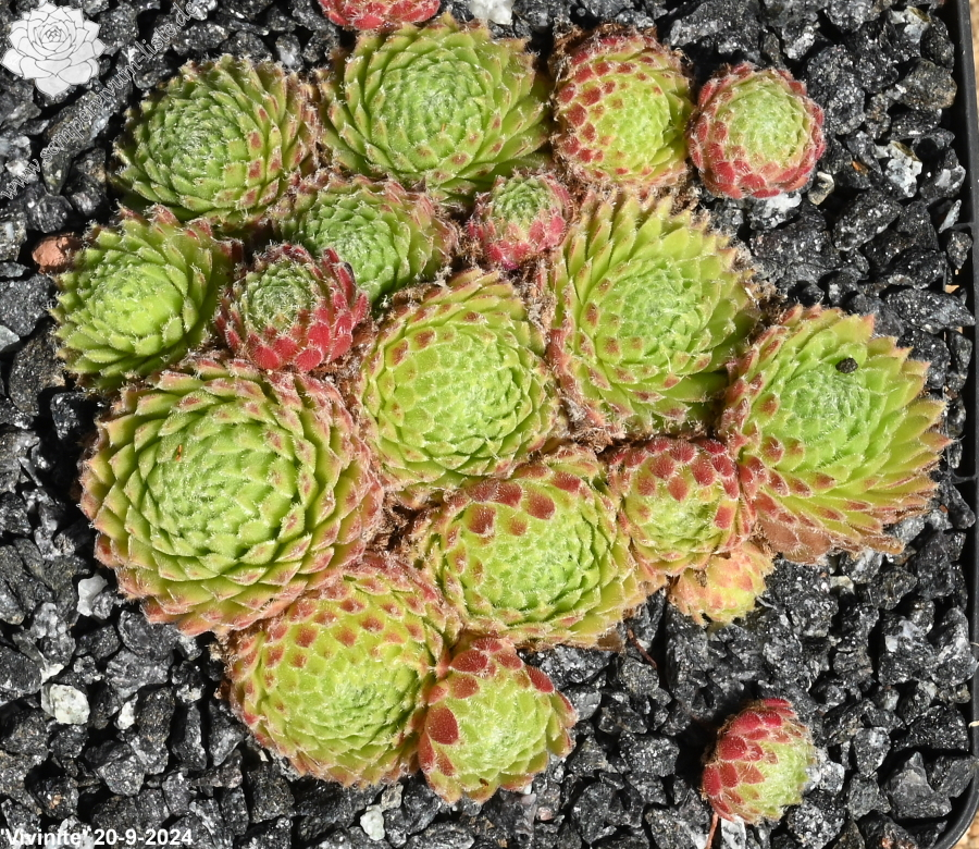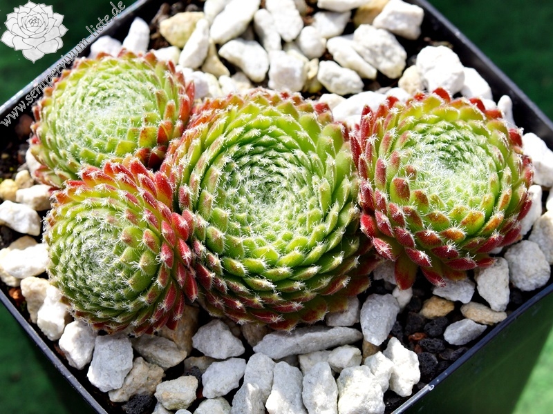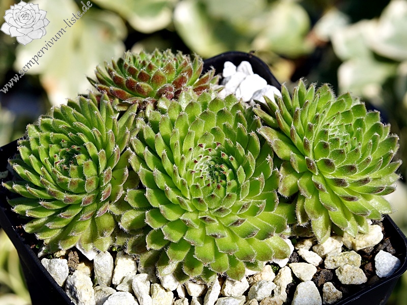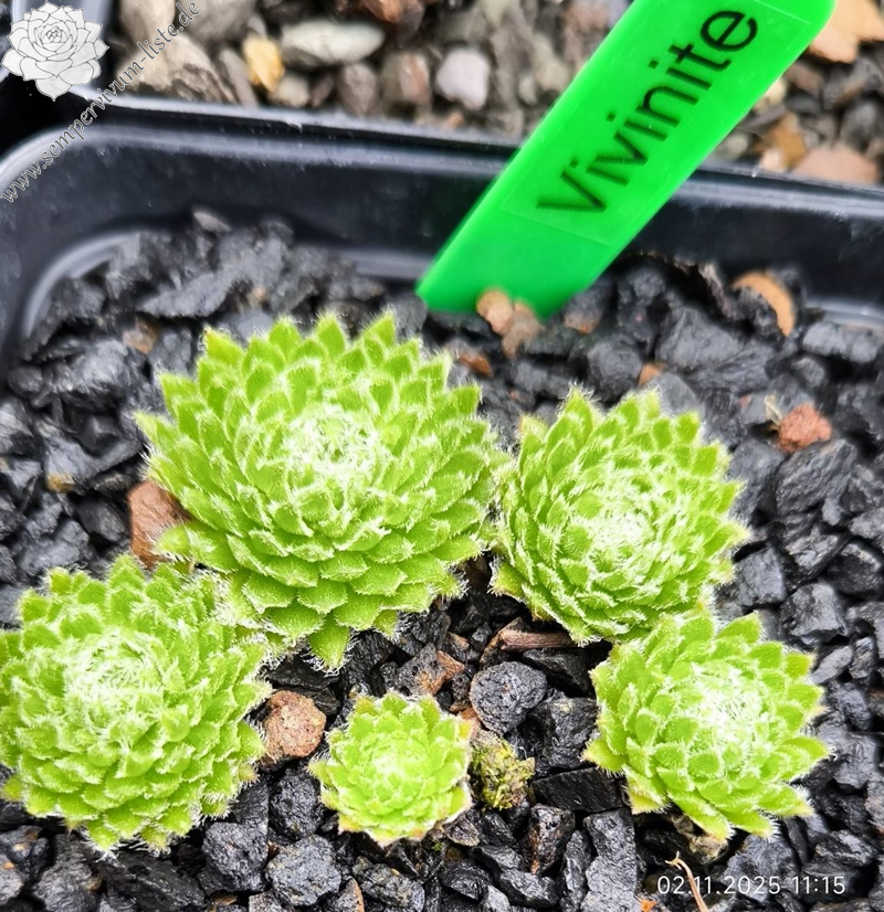 Sempervivum 'Vivinita' ist ein kleinerer Hauswurz mit ganz hellgrüner Färbung. An den Blattenden sind sie leicht behaart. Sie sprossen sehr willig und bilden schnell dichte Polster. Die frischgrüne Färbung fällt immer auf!