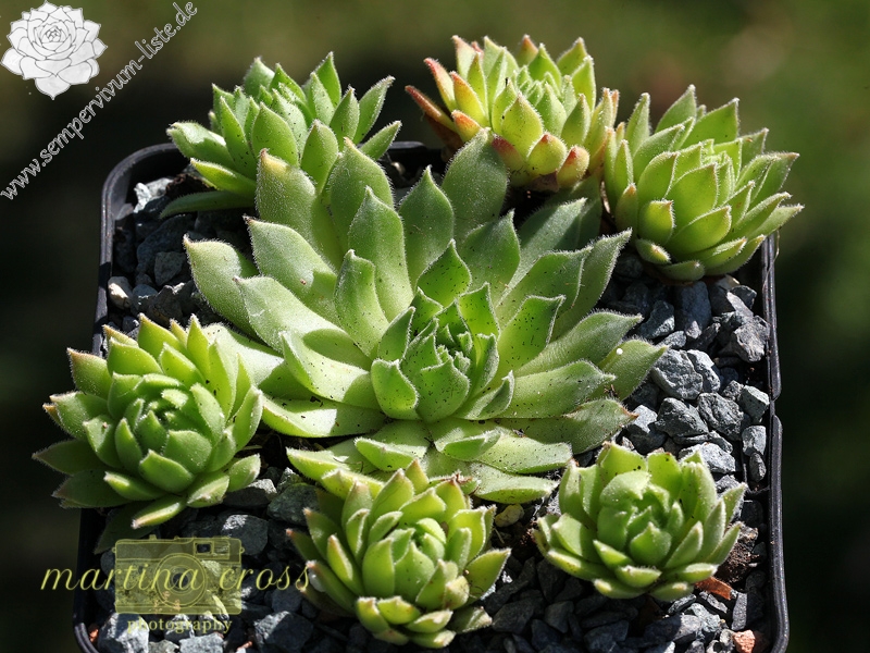 Eine wüchsige, neuere Sorte, die aus Sämlingen von S. arachnoideum 'Silberknopf' ausgelesen wurde. Die leicht samtenen Blätter formen ca. 10 cm große Rosetten. Die Spitzen sind je nach Jahreszeit mehr oder weniger rotbraun gefärbt.