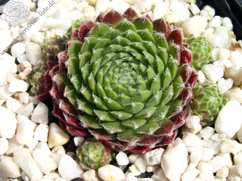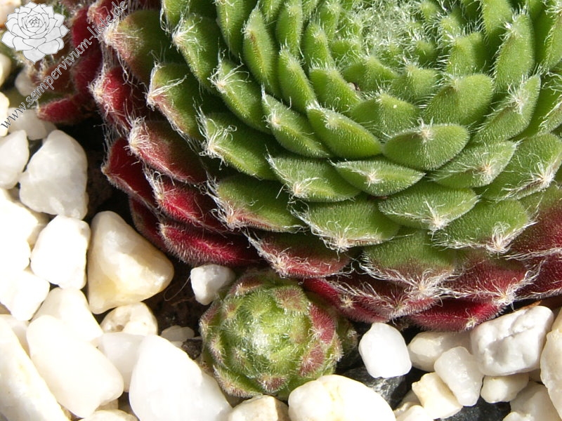 Die kleinen, leicht behaarten Rosetten bilden ganz dichte grüne Polster. Eine wüchsige Sorte!